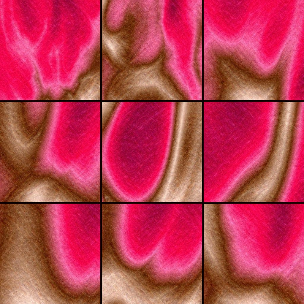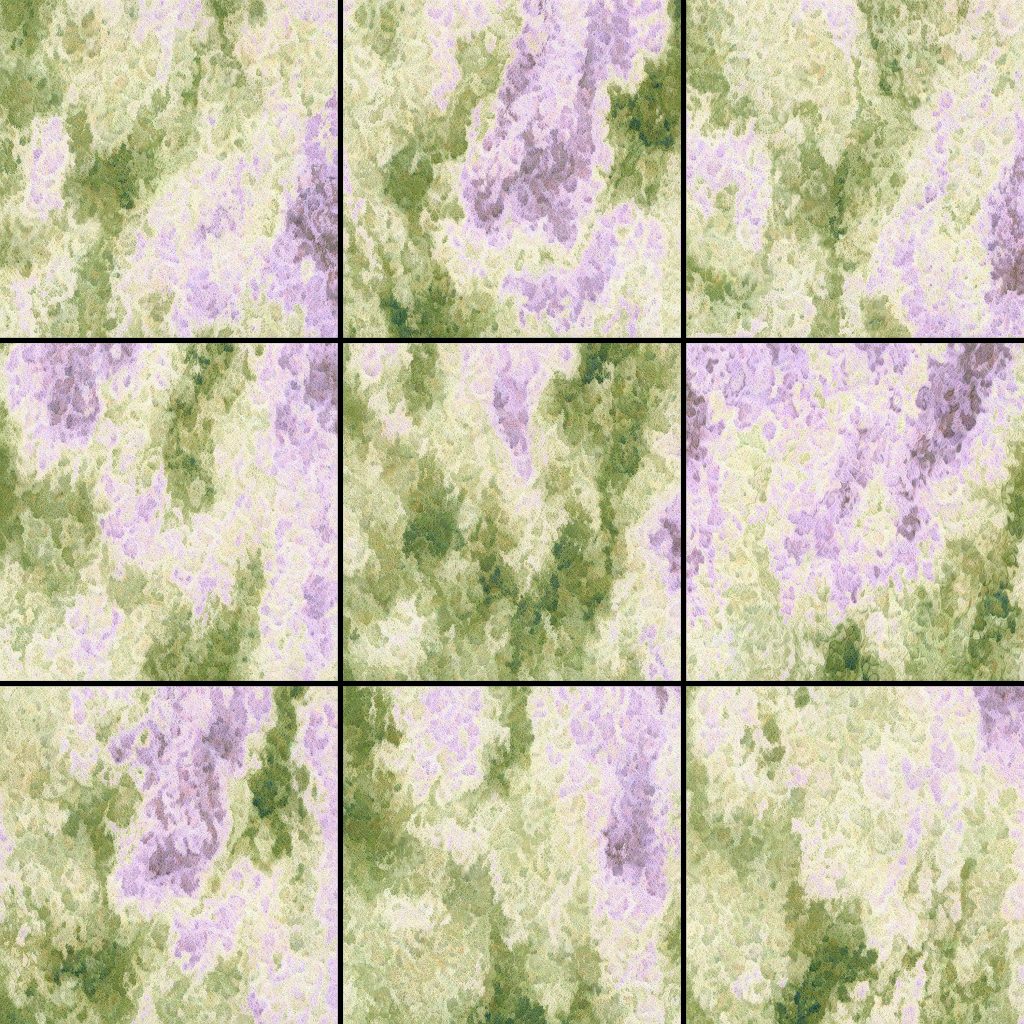 Results of the custom-built 2D fractal brownian motion generator which can generate ridged and turbulence noise were interpreted as thresholded and interpolated color values. Different parameter combinations allow movement in the value landscape which yields several different and interesting patterns.