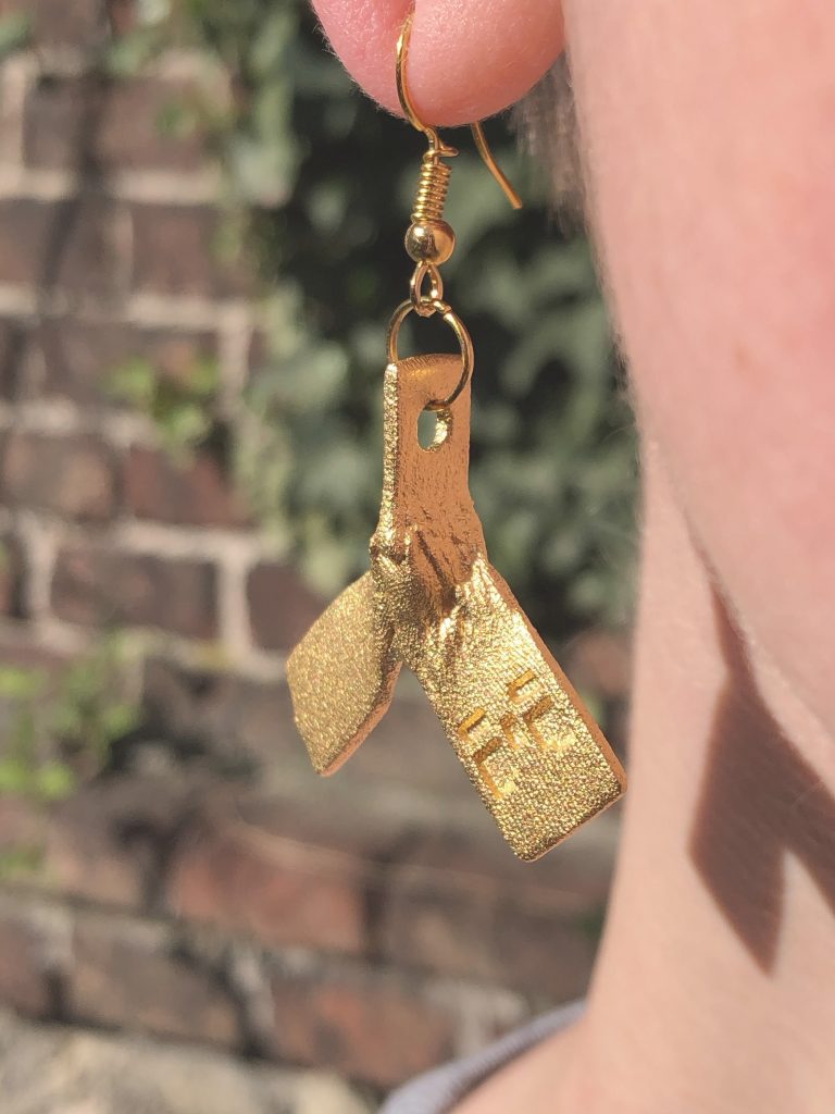 Earrings based on the algorithmic connector system developed for my thesis at ETH Zürich. They were 3D printed in steel using binderjet metal printing with a successive sintering step and gold electroplating.