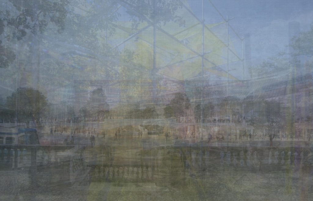 All the scraped data including the image links, the ResNet encoding and the 2d coordinates of the mapping is saved for each post. By choosing specific coordinates in the mapping space and evaluating distances to the mapped images, neighbourhoods can be extracted. These neighbourhoods show similar characteristics and often correspond to different concepts present in the images – indoor, outdoor, plans, winter, people, fashion, city. It is also possible to extract neighbours for a new image in one of the mappings by encoding it with the ResNet and then embedding it into the mapped space. By blending together 30 neighbour images of chosen coordinates or a mapped external image spectrum images of these localized concepts can be created.